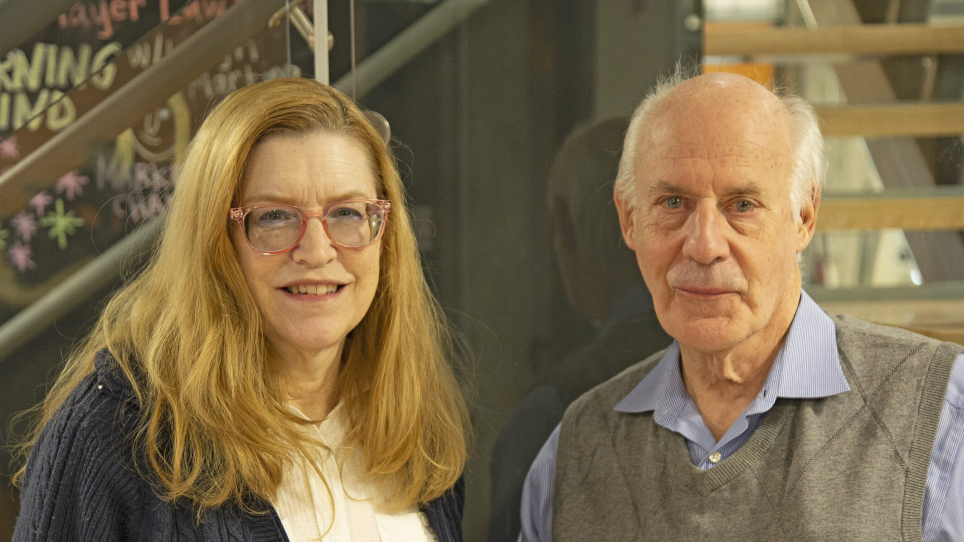 Co-founders of Head & Heal, Allan Gandelman and Karli Miller-Hornick, stand in among hemp plants in a greenhouse.