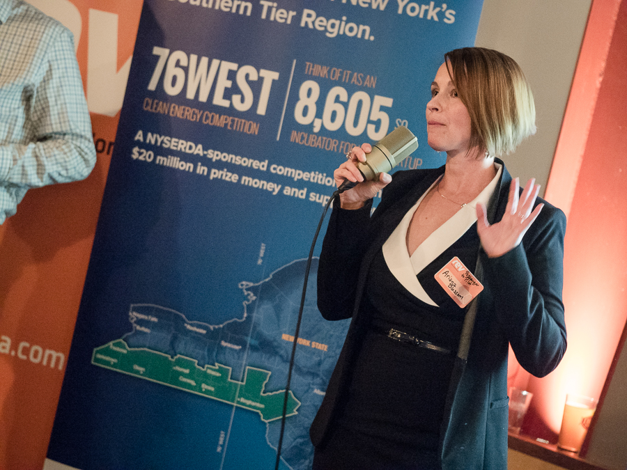 Brian Bauer, 76West Program Director for the Southern Tier Startup Alliance, introduced the 76West Clean Energy Competition before the pitches. The event was the final in a series of 76West-sponsored events across the region, from Fredonia to Binghamton.