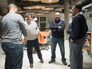 Dean Soumitra Dutta, Ithaca Mayor Svante Myrick, and Tom Schyver welcomed visiting Executive MBA metro NY students at Rev: Ithaca Startup Works on Wednesday, Jan. 13th.
