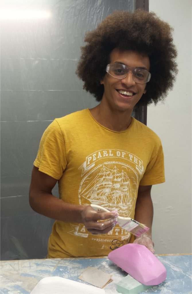 Gabriel Gonzalez painting a product design model in the Rev workshop during the STSA Hardware Accelerator.