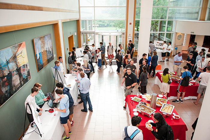 When the pitches concluded, it was half past 8:00pm and the clouds had cleared. Members of the audience returned to the atrium, seeking out teams they’d been impressed by to learn more about their projects. It was an opportunity for the 2016 Hardware Accelerator teams to reach potential investors and connect with potential team members. When asked about these efforts later, Hunter Hartshorne of team Hillside Hydro grinned. “I’m still writing emails to all the people I got business cards from.”