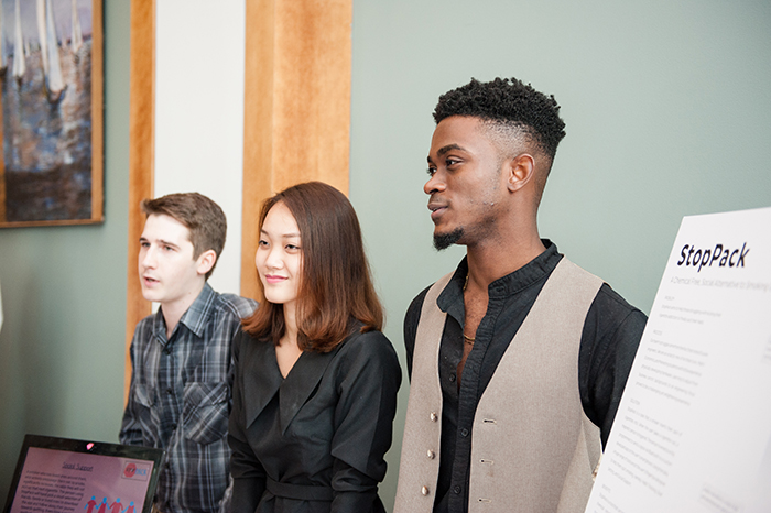 The StopPack team is a great example of Hannah’s point. A group of Ithaca College business students to whom engineering was something of an enigmatic endeavor before the Hardware Accelerator, StopPack finished the program with a functioning electronic cigarette case that acts as a chemical-free smoking cessation method by providing feedback through a tracker app. Extending her arms to the audience, Hannah encouraged anyone with such an idea to reach out to Rev. “These teams came in this summer without products. They just had problems, and they decided that this summer, they were going to solve them.”