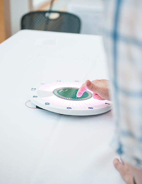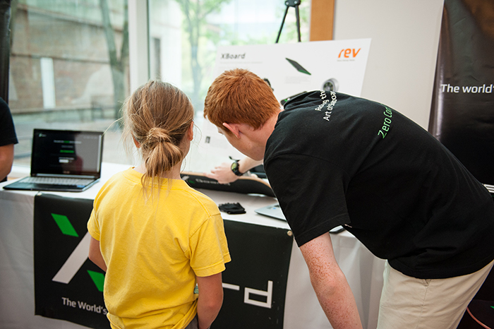 It was August 11th, just before 6:00 pm. Outside, the clouds threatened rain – it was Ithaca, after all. Inside, people bustled about, arranging table displays and setting up video equipment. Eight tables lined the edge of the atrium in Cornell’s Biotechnology building, ornamented with various gadgets, among them an electric skateboard, a large, a brightly colored clock, and silicone rings that could produce over a thousand different sounds. The project teams stood, eagerly awaiting the chance to show off their ideas. Nametags were donned, business cards readied, ties straightened, and shirts smoothed. If the entrepreneurial endeavor is a marathon, this event was the finish line for the cohort in question – and the community had come to watch their victory lap. Demo Day, the conclusion of Rev’s 2016 Hardware Accelerator Program, was their showcase.