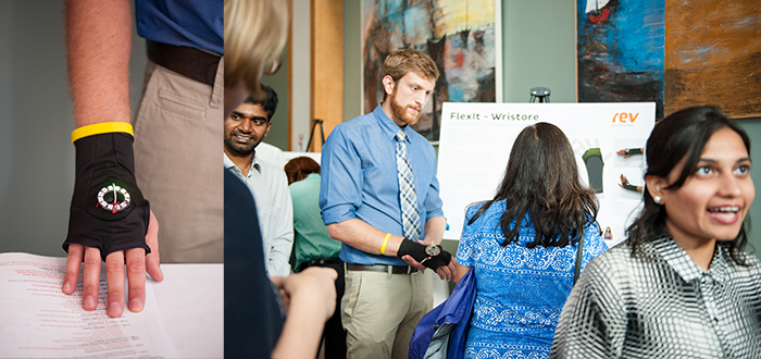 The five-minute pitches were accompanied by product demonstrations and other props. Pitching is a chance for new businesses to prove they’ve done their homework, and the 2016 Hardware Accelerator teams certainly had. Jason Guss, of team FlexIt, cited facts and figures to support his team’s product, an ergonomic glove designed to track hand movements to combat carpal tunnel in the workplace.
