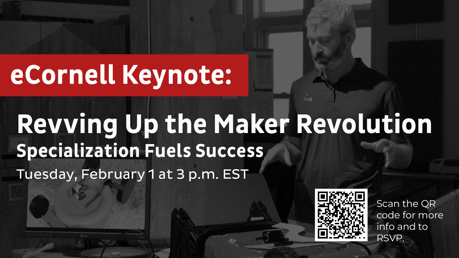 eCornell Keynote. Revving Up the Maker Revolution: Specialization Fuels Success. February 1 at 3:00 p.m. EST.