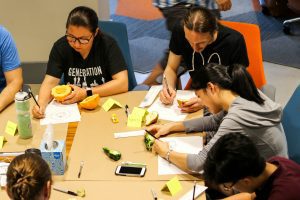 Architect In Shik Lee, Adjust Professor of Design at Tompkins Cortland Community College, shook things up by challenging the teams to think creatively, from different perspectives. Under her guidance, the teams practiced sketching and paper prototyping. Lee explained how important design is in the prototyping process.