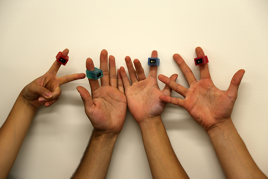 When Steven Dourmashkin pulls me over to his desk and offers me a ring, he’s not proposing — he’s introducing me to Specdrums, the company that he and cofounder Matt Skeels created in 2014. The ring in question is compact, made of silicone, and comes in several different colors. When the user taps it against a colored surface – a wall, a Post-It note, a pant leg – a sound plays. Tap on a different colored surface, and the sound changes style or pitch. The ring, connected via Bluetooth to the user’s phone, can loop in as many as 1000 sound/color combos, creating a veritable cacophony of music and noise.