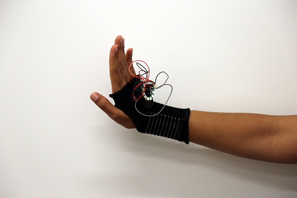 Trusha Parekh lifts up her right hand. Balancing it parallel to the floor, she shows off the fitted black glove she’s wearing. It’s outfitted with sensors and LED lights, and as she holds her wrist at different angles, the sensors react and the glove flashes.