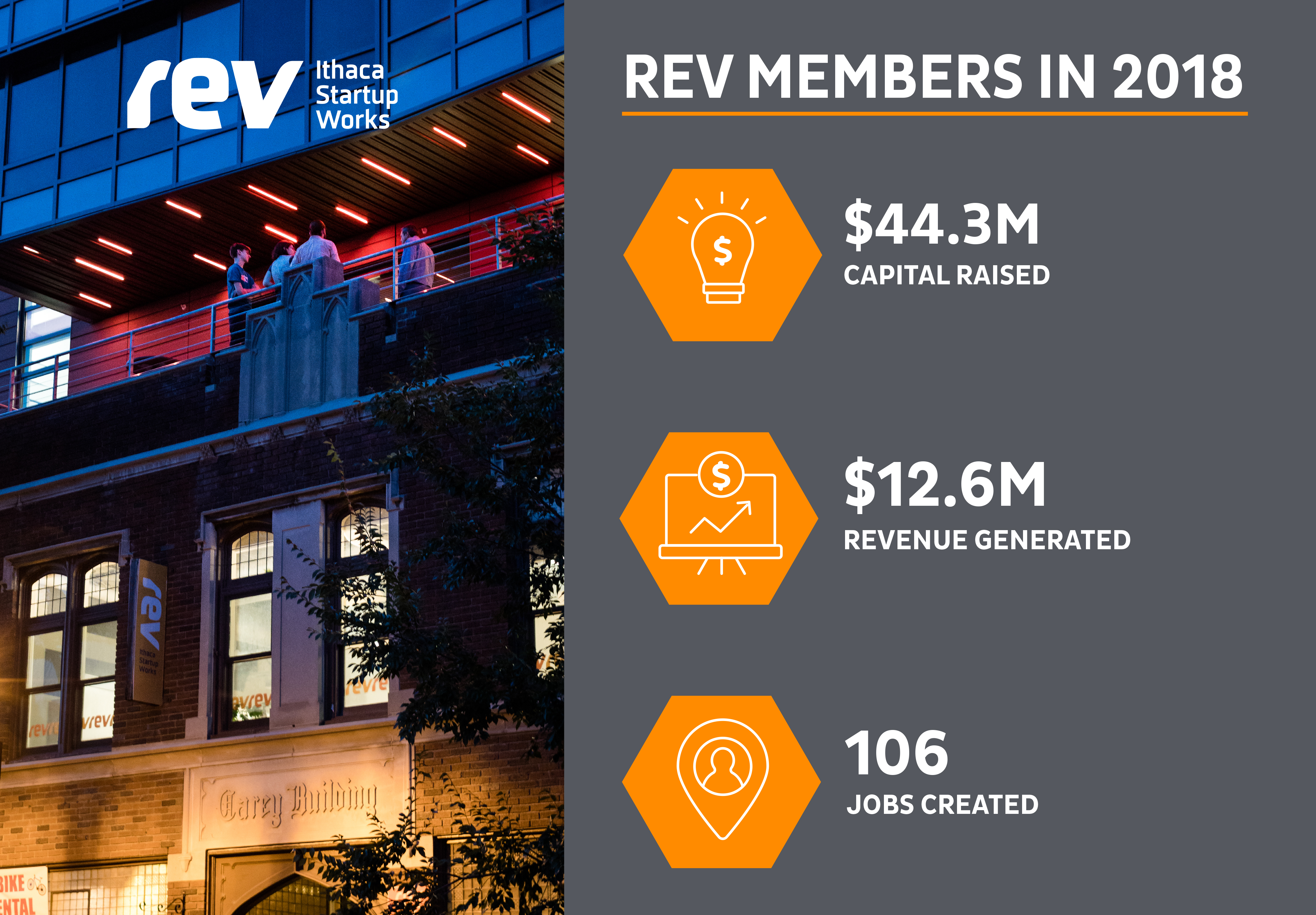 2018 marked the fifth anniversary of Rev: Ithaca Startup Works’ founding, and the incubator made significant strides in delivering on its core mission: providing resources for startup businesses as they create jobs and foster economic development in Ithaca and the surrounding communities.