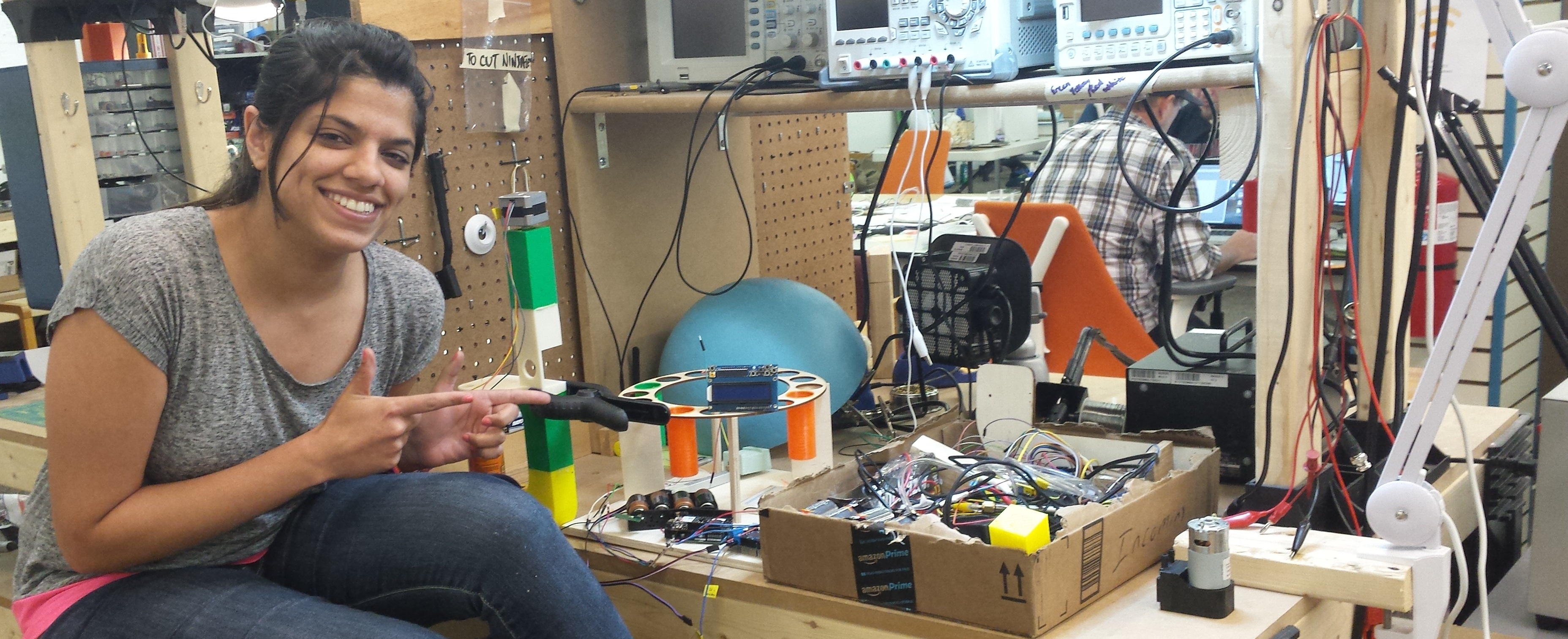 Nandita Bal, Ger-Safe Chief Product Coordinator and Cornell 2015 MEng graduate, shows off her work at the Hardware Accelerator.