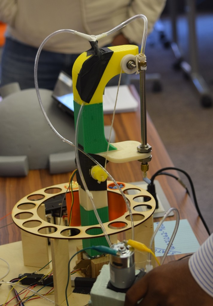 Geri-Safe participated in the Southern Tier Startup Alliance’s Hardware Accelerator, hosted at Rev over the summer. Nandita Bal, along with Arjun Kurian, started with a concept and a patent-pending, integral component. By the Hardware Accelerator Demo Day, the pair built a working proof of concept of Geri-Safe’s premier device, Medi-Trust, an automatic pill sorting and dispensing machine with its various components working together.
