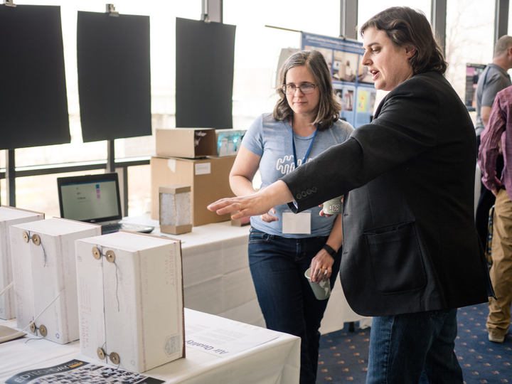 Xanthe Matychak explains the Illuminating Air Quality display at the Ithaca College EdTech Conference